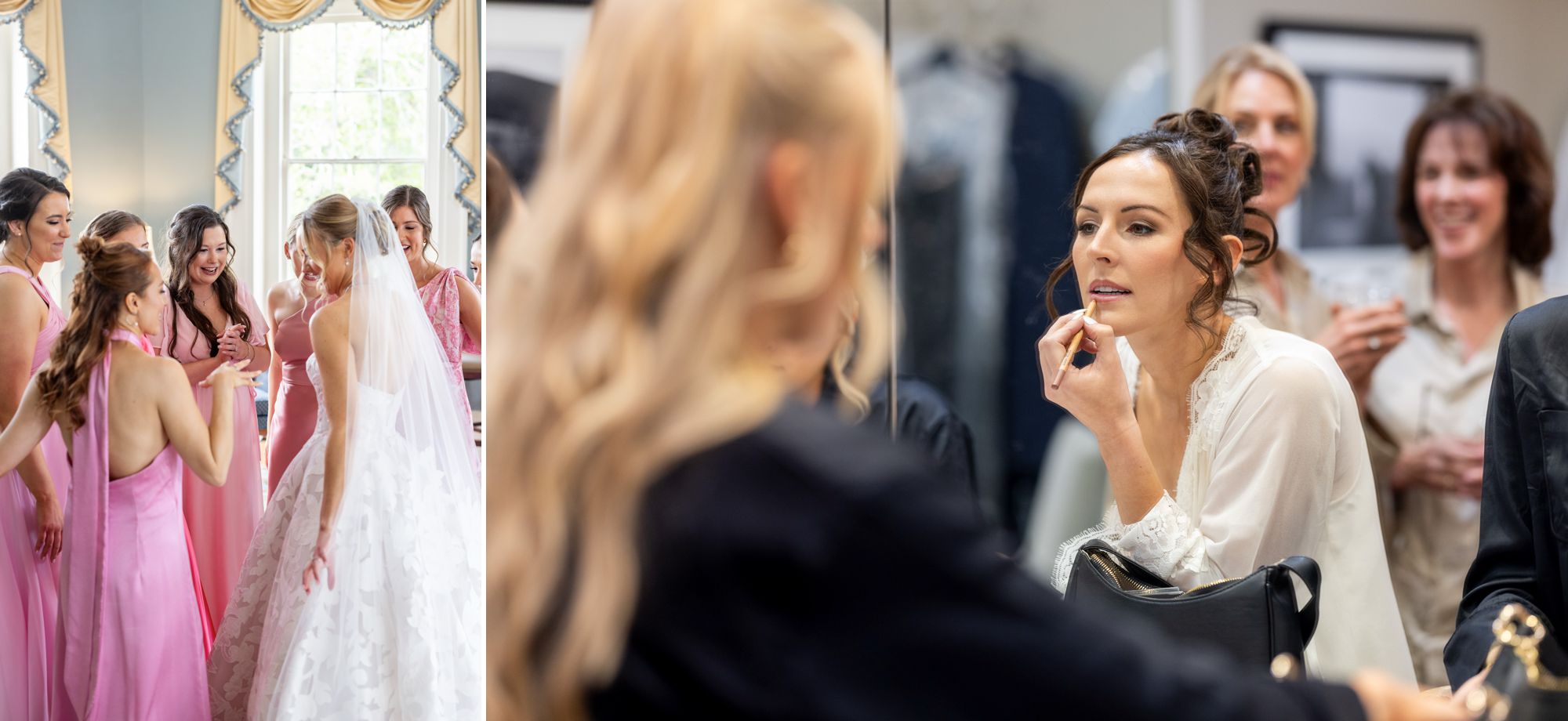 The bridesmaids almost always have a good laugh when they realize I know more about false lashes, heels, and hair placement than they expected. It becomes part of the fun.
